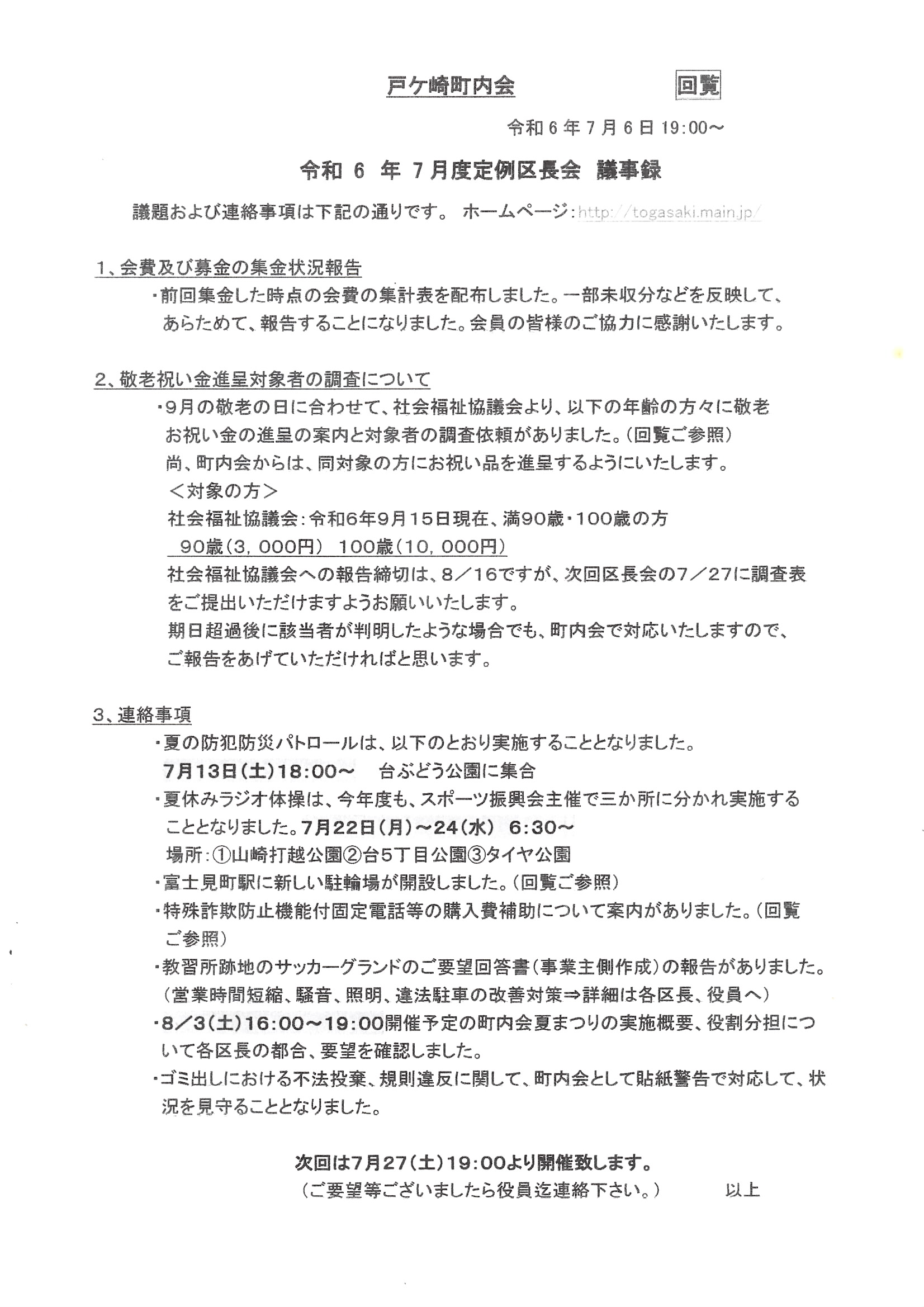 安心安全・住みよい町づくりをめざす戸ヶ崎町内会